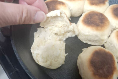 焼くのもスキレットで。